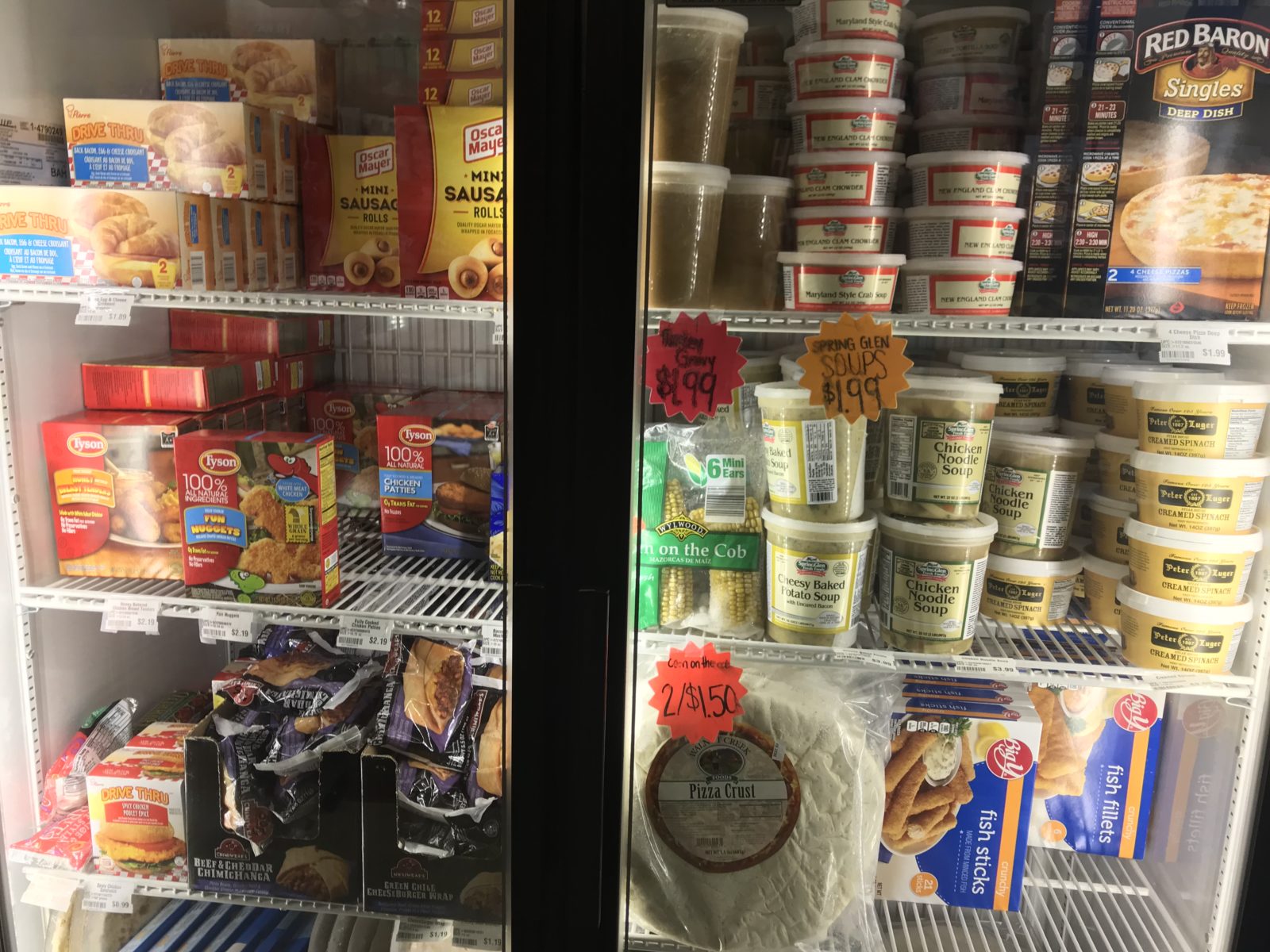 In the freezer section I found Gene Wenger’s hamloaf, frozen pizzas, chicken nuggets, ice cream, soft pretzels and more. All at similar prices to any other local discount grocery store.
