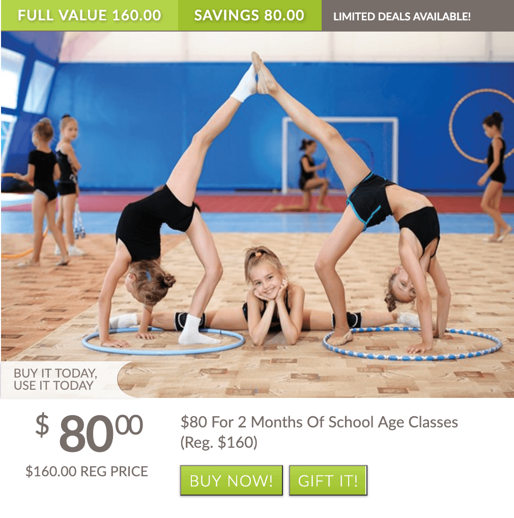 - Fusion Gymnastics: $80 for 2 months of school age classes or $70 for preschool classes (just $60 with promo code)