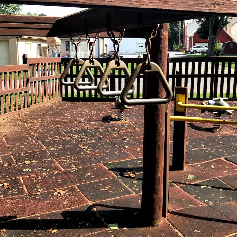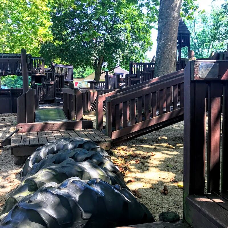 The Reamstown playground is almost completely in the shade which makes it perfect for hot summer days. I love how the tire swings, zip lines, slides, bridges spur creativity and imagination.