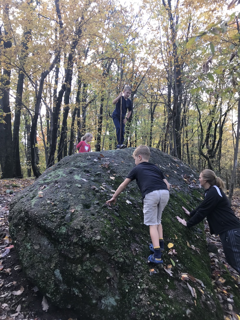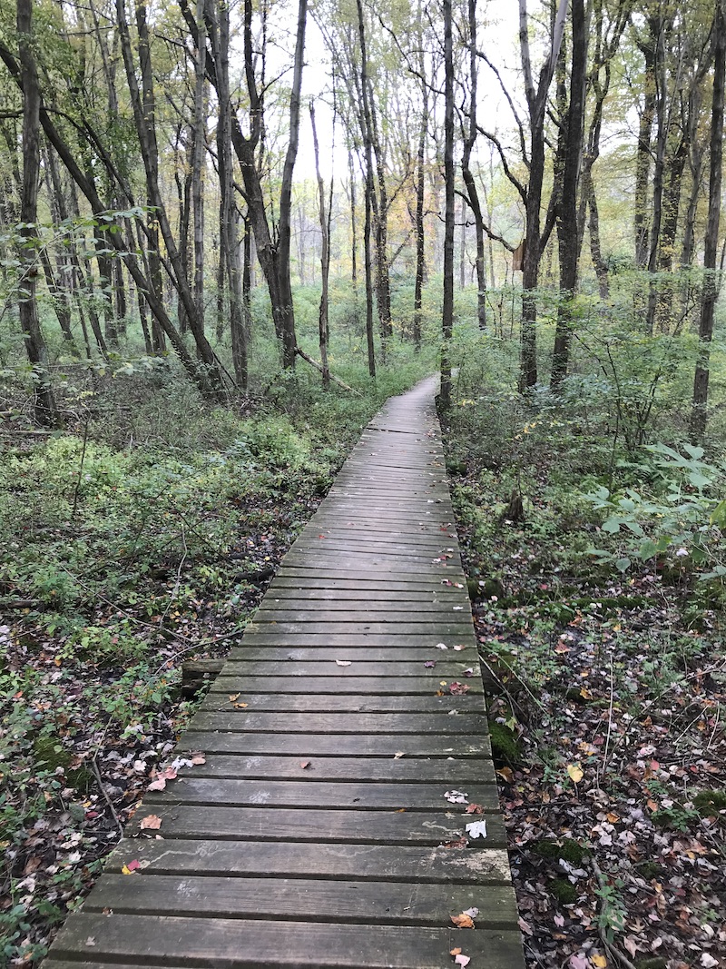 We hiked this trail in October and I think it took us about an hour or a little more. It’s a really neat trail, because it has some wooded platform areas that kids love to run on. It’s like they are at the boardwalk! 🙂