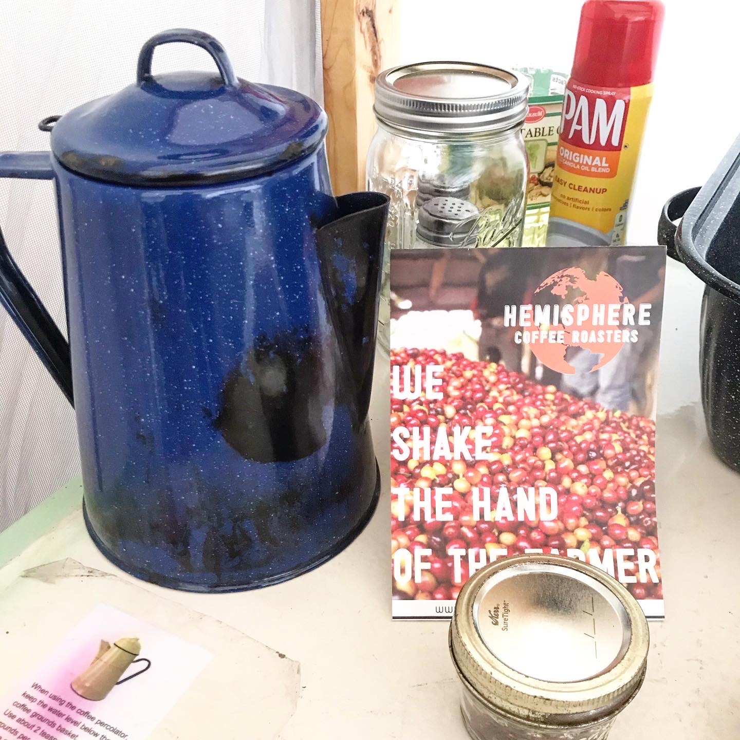 - a coffee percolator and some fresh coffee