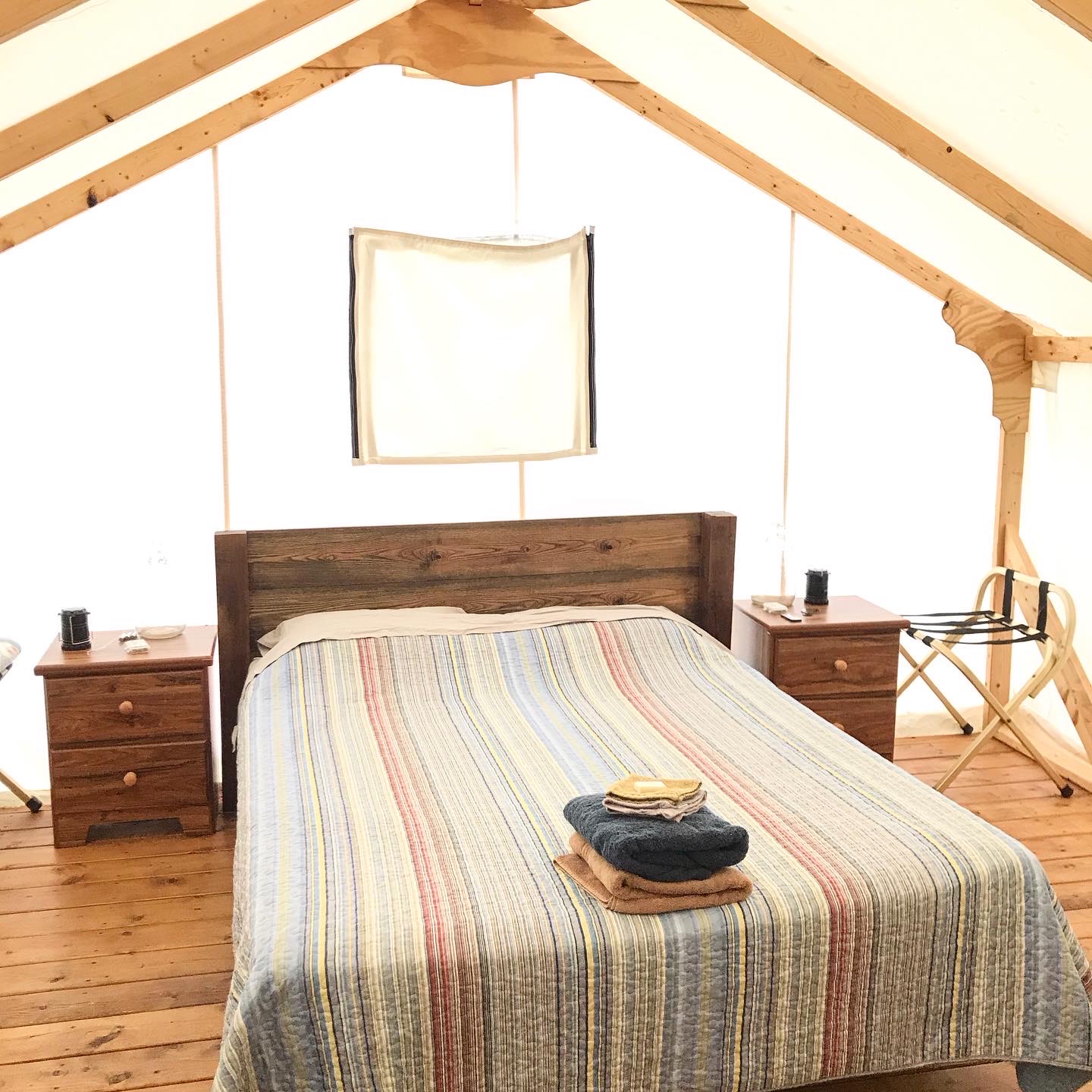 Here are photos of the inside of the tents and some of the items you’ll find included on your glamping trip as mentioned above.