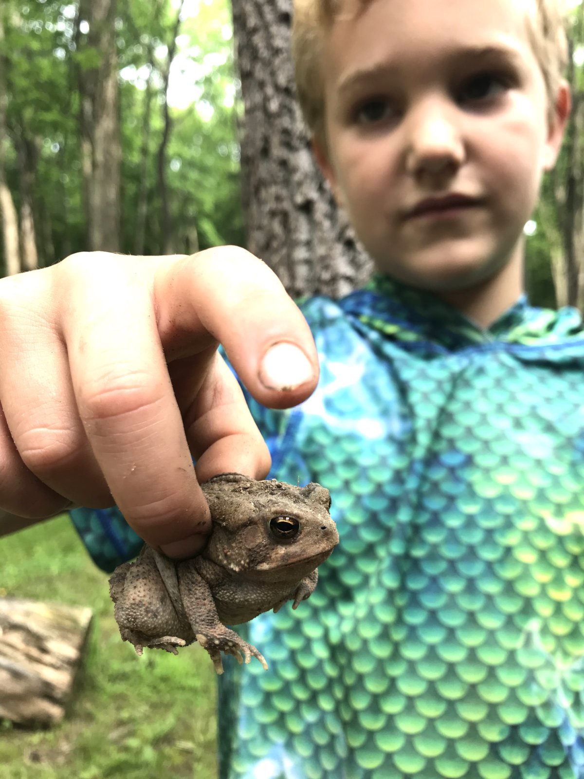 Would you believe we saw deer, caught a toad, almost caught a lizard, and saw countless birds including catbird, woodpeckers, and a phoebe with a nest right where we spent most of our time?