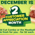 Subway Meatball Marinara only $2 in December